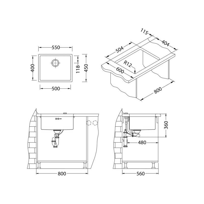 Način ugradnje: Ugradbeni / Poravnata ugradnja / Podugradbeni
