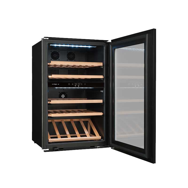 AVI48PREMIUM ugradbeni podrum je dvozonski, što znači da se 2 zone mogu podešavati neovisno jedna o drugoj. Tako možete postaviti temperaturu između 5° i 18°C u svakoj zoni. Vaše najbolje boce vina bit će pohranjene na ravnomjernoj temperaturi. Crvena, bijela ili ružičasta vina, sva ta vina možete čuvati u jednom te istom podrumu i kušati ih na idealnoj temperaturi da u potpunosti uživate u njihovim mirisima.