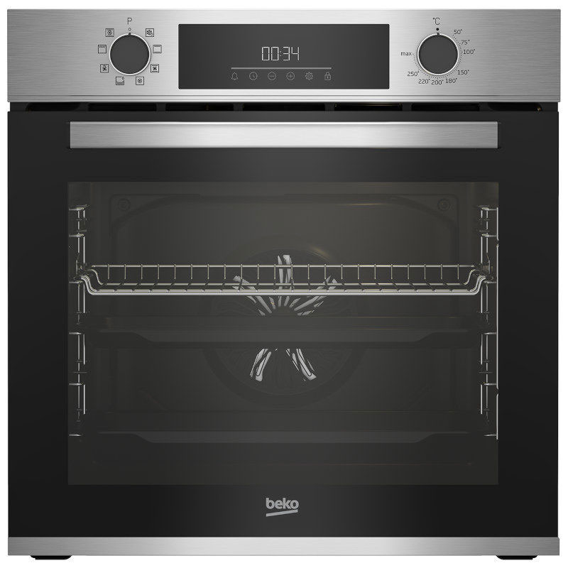Beko pećnica ugradbena zapremine: 72 l, dimezija (VxŠxD): 59,5×59,4×56,7 cm, mase: 28,7 kg. Halogena rasvjeta pomaže vam da vidite cijelu pećnicu, pa kulinarske kreacije možete pratiti sa zatvorenim vratima. Izdržljiva vrata podržavaju opterećenja teška čak 22,5 kg. Čišćenje parom: SteamShine.