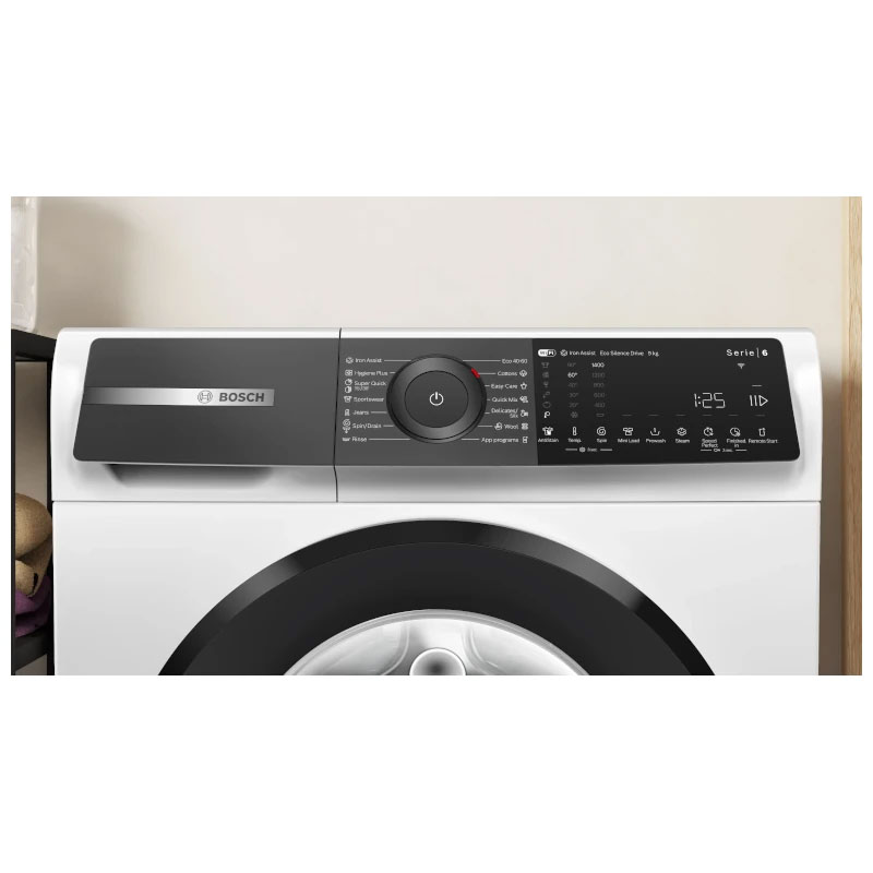 Bosch perilica rublja Serie 6, kapacitet 9kg 1400 o/min. Dimenzije perilice 845x598x590 mm, zapremnina bubnja: 65 l, težina 72.5 kg. Smanjuje gužvanje za do 50 %. Manje peglanja, više vremena za vas. Program za samo jedan komad rublja. Kućanski uređaji sad se mogu pametno povezivati kako bi svakodnevni život učinili jednostavnijim. Jednostavno odaberite najbolji program pranja s našom brzom funkcijom Start Guide. Energetski razred: A.
