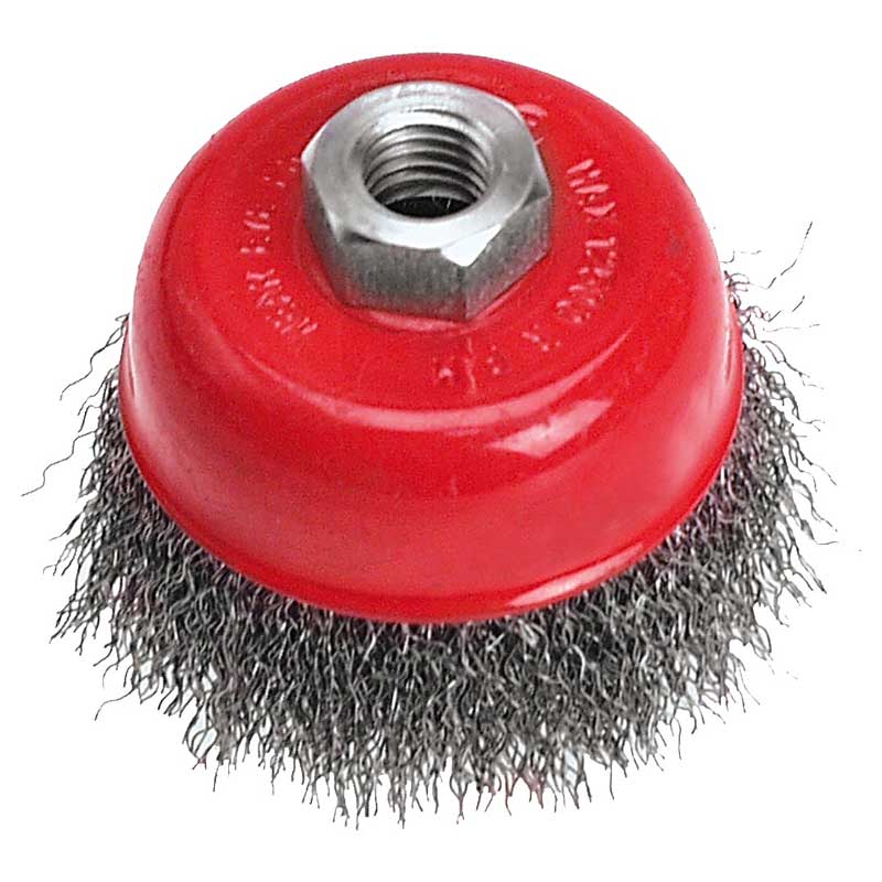 Žičana četka VERTO od čelične žice debljine 0.33 mm. Ojačano kućište omogućuje učinkovito čišćenje čeličnih površina. Može se koristiti s kutnom brusilicom.