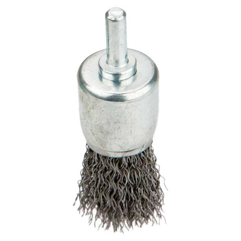 Žičana četka VERTO promjera 24 mm, od čeličnih žica prekrivenih mesingom debelih 0.33 mm. Ojačano kućište omogućuje učinkovito čišćenje čeličnih površina. Može se koristiti s bušilicom.