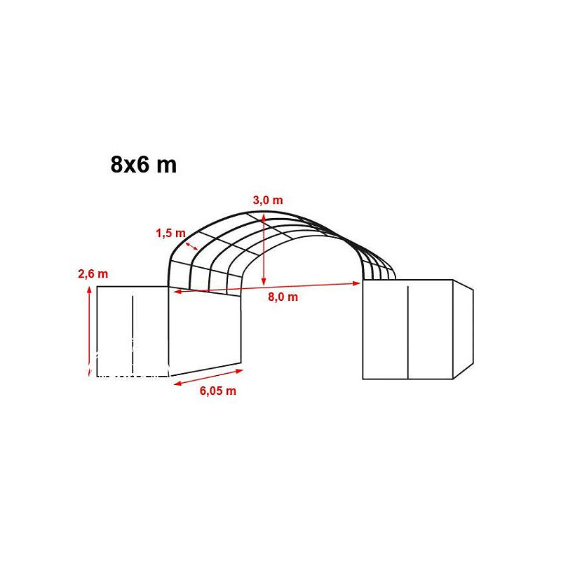 Raspoložive dimenzije nadstrešica: 6 x 6 m; 8 x 6 m; 8 x 12 m i 10 x 12 m.