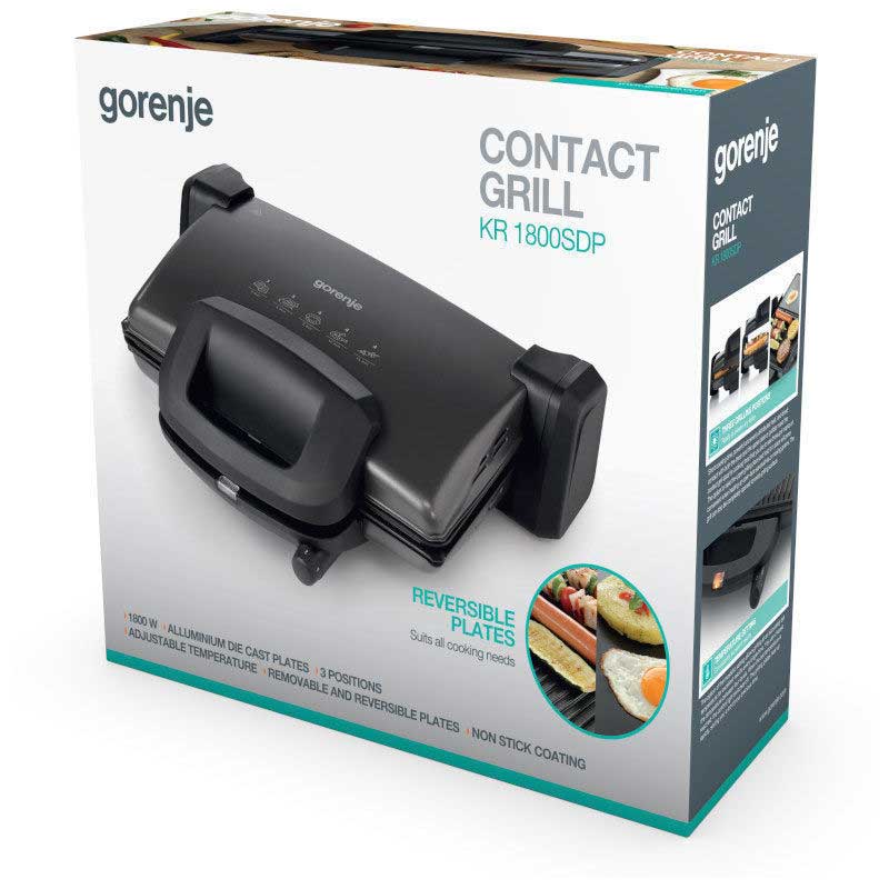 Gorenje električni roštilj, priključna snaga: 1800 W. Broj stupnjeva temperature za savršeno namještanje: 4, broj razina pečenja: 4. Širina ploče za pečenje: 34 cm, dubina ploče za pečenje: 23 cm. Dvostrane promjenjive ploče (jedna s grilom i jedna s ravnom površinom) čine ovaj roštilj svestranim i daju savršene rezultate, bez obzira na to kakav je vaš recept – od najdebljih odrezaka do najmekšeg povrća. Možete koristiti rebraste gril ploče za one savršene pruge od roštilja ili ravne ploče za jaja i palačinke.