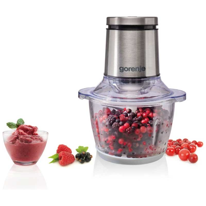 Gorenje sjeckalica maksimalne snage motora 450 W. Izmjenični motor za pouzdan rad. Volumen posude sjeckalice: 1,2 l. Gumb za trenutno uključivanje s osiguračem.