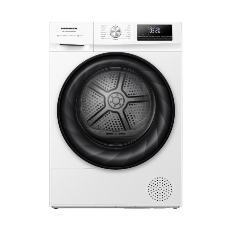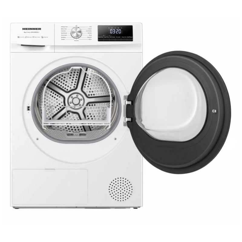 SUŠILICA RUBLJA S TOPLINSKOM PUMPOM HEINNER HHPD-H90FRA++, KAPACITET PUNJENJA 9 KG, ENERGETSKA KLASA D, 15 PROGRAMA SUŠENJA, LED ZASLON, ZAŠTITA OD ALERGIJA, BRZI PROGRAM 30 MIN, PROGRAM ZA NJEGU BEBA, FUNKCIJA ODGOĐENOG POČETKA, FUNKCIJA PROTIV NABORA, SVJETLO U BUBNJU, PODRŠKA ZA FLEXRACK, ODABIR STUPNJA SUŠENJA, INDIKATOR ČIŠĆENJA FILTRA ZA KAMENAC, INDIKATOR PUNOG SPREMNIKA ZA VODU, ZAŠTITA ZA DJECU, DIMENZIJE (ŠXV): 59,5X61,0X84,5 CM, BOJA: BIJELA