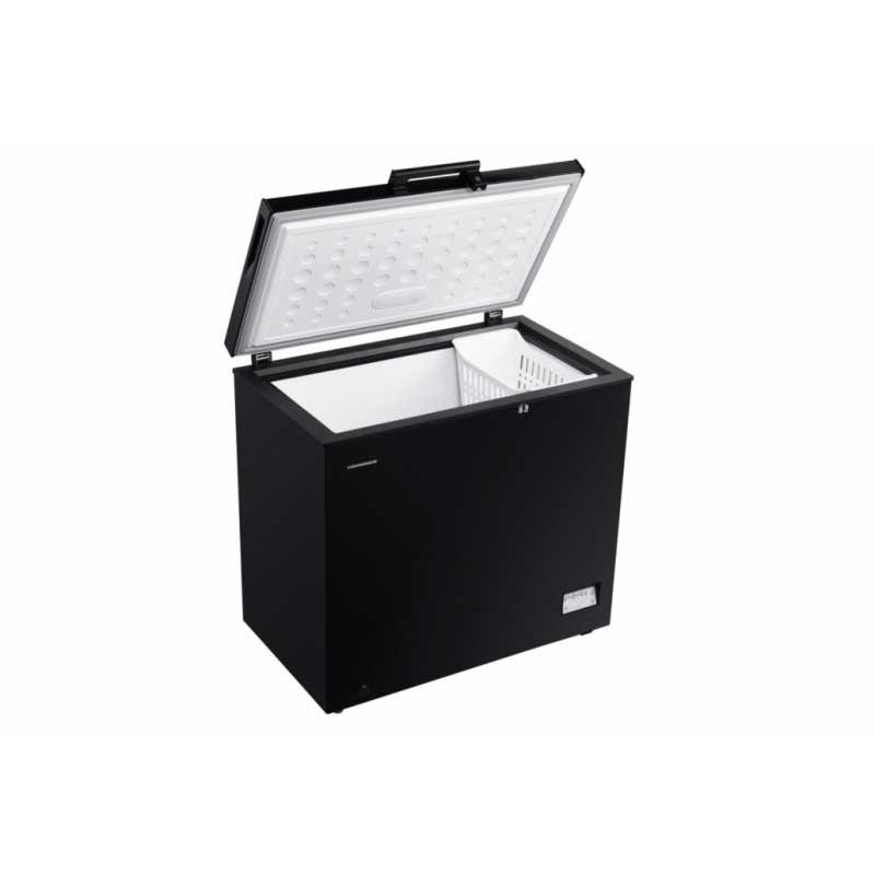 Heinner HCF-205NHBKE ++, energetski razred: E, ukupni kapacitet: 198L, elektroničko upravljanje, otpornost na hladnoću (radi na niskim temperaturama: -15 ° C), otpornost na varijacije napona 175 ~ 255V Zaslon, vodootporan, funkcija brzog zamrzavanja, 1 plastična košara, ručno odmrzavanje, role za lakši transport, kapacitet smrzavanja: 12 kg / 24h, dimenzije (ŠxDxV): 90,5 x 54,5 x 84,5 cm, boja: crna