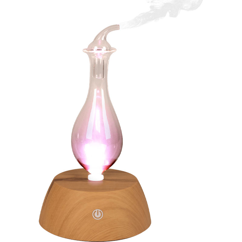 Ultrazvučni aroma raspršivač sa svjetlom, rad bez vode s čistim aromatičnim uljem, spremnik za ulje 50 ml., stakleno tijelo i mlaznica, radi več sa 10 – 15 kapi aroma ulja, dva intenziteta rada, rad s prekidima (2 minute uključeno / 2 minute isključeno), svjetlo raspoloženja koje mijenja boju, tipka na dodir, ograničenje radnog vremena od 2 sata, napajanje dodatni unutarnji strujni adapter, dimenzije Ø 11.5 x 21 cm