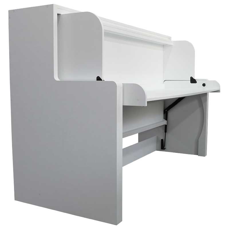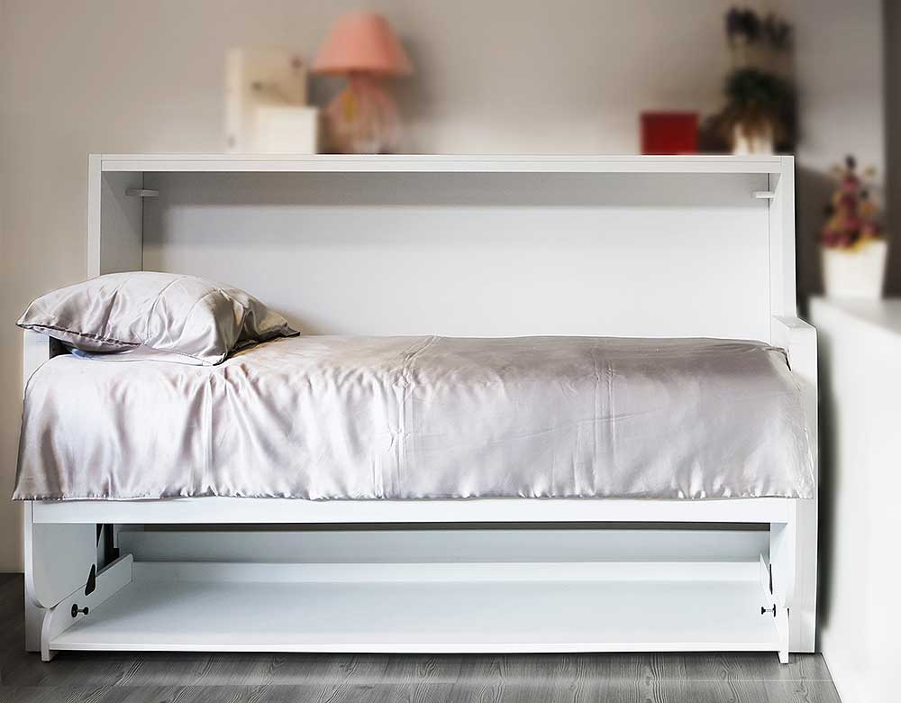 Savršeno za uštedu prostora ili pak za manje prostorije – za mini-apartmane, studentske domove, dječje sobe, karavane pa čak i brodove! Tavoletto okov pretvara udoban krevet u radni stol za dnevnu upotrebu – nema potrebe za spremanjem stola, sve što je na njemu je sigurno prilikom ponovnog transformiranja iz stola u krevet! Razmak između kreveta i stola je dovoljno velik za vaše osobno računalo, stolnu svjetiljku ili radne dokumente. Kada ponovno sklopite krevet, on nestaje u stražnjoj stijenci namještaja.