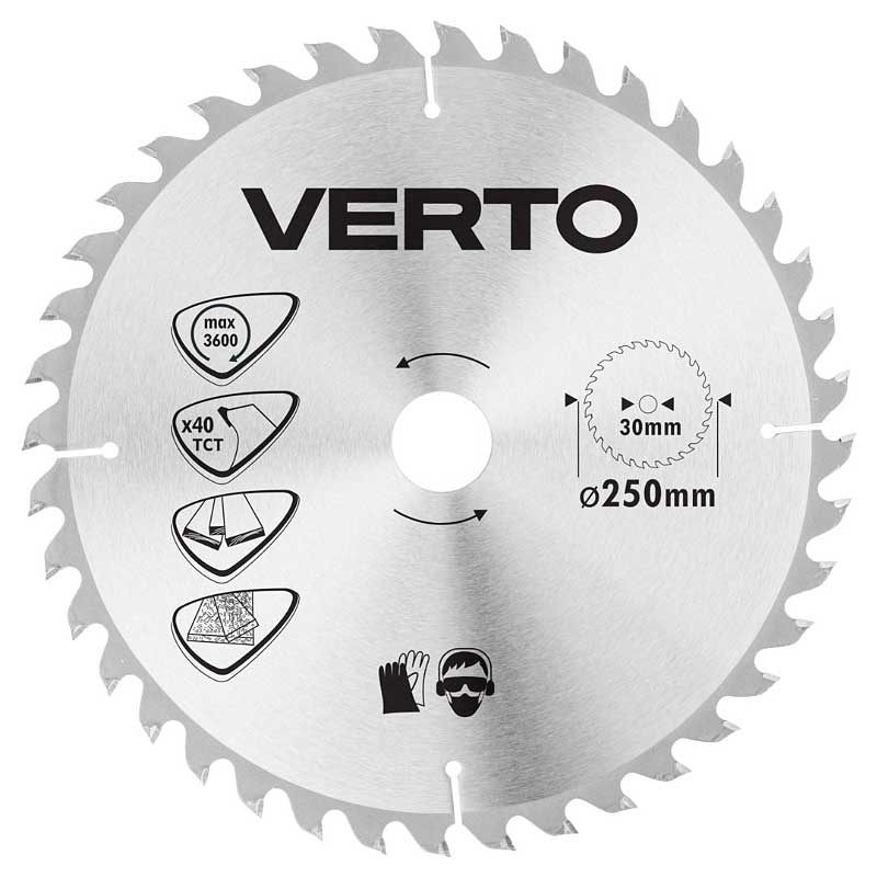 Kružna pila od karbida VERTO smanjene debljine, što omogućava veću brzinu rezanja. Zupci od sinteriranog karbida YG8A dizajnirani su za grubo rezanje drva i sličnih materijala (šperploče, iverice, MDF). Zbog redukcijskih prstenova, oštrice je moguće koristiti s većinom modela pila.