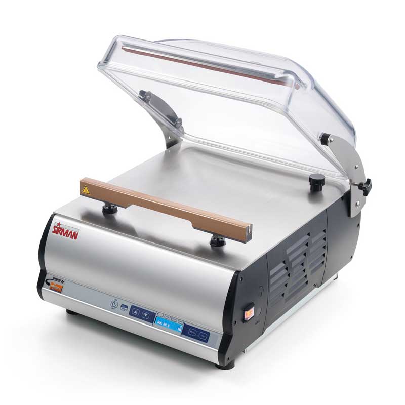 Podnožje platforme za proizvode izvedeno od inoxa “AISI 304”. Praktičan i intuitivan dodirni zaslon. Sistem elektroničke kontrole sa senzorom pritiska, za precizan i brz rad.