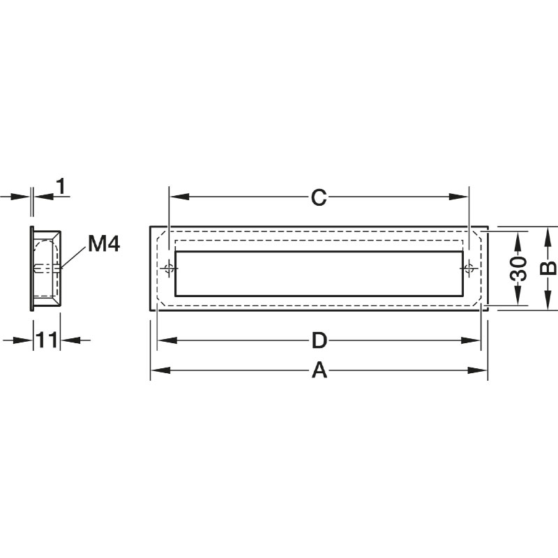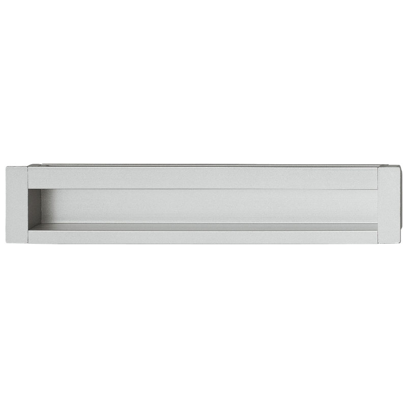 Ručkica školjkasta 175×34 mm 155.01.132 – Završni dio: u boji aluminija, srednji dio: srebrna, Širina: 175 mm, visina: 34 mm, razmak otvora: 160 mm, dimenzija kućišta: 170 mm