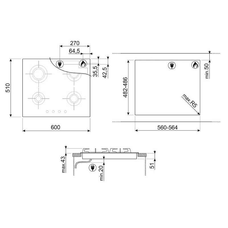 Ostalo Ravni rubovi, Ravni plinski plamenici, Elektronsko paljenje integrirano u gumbe, Brzi sigurnosni ventil