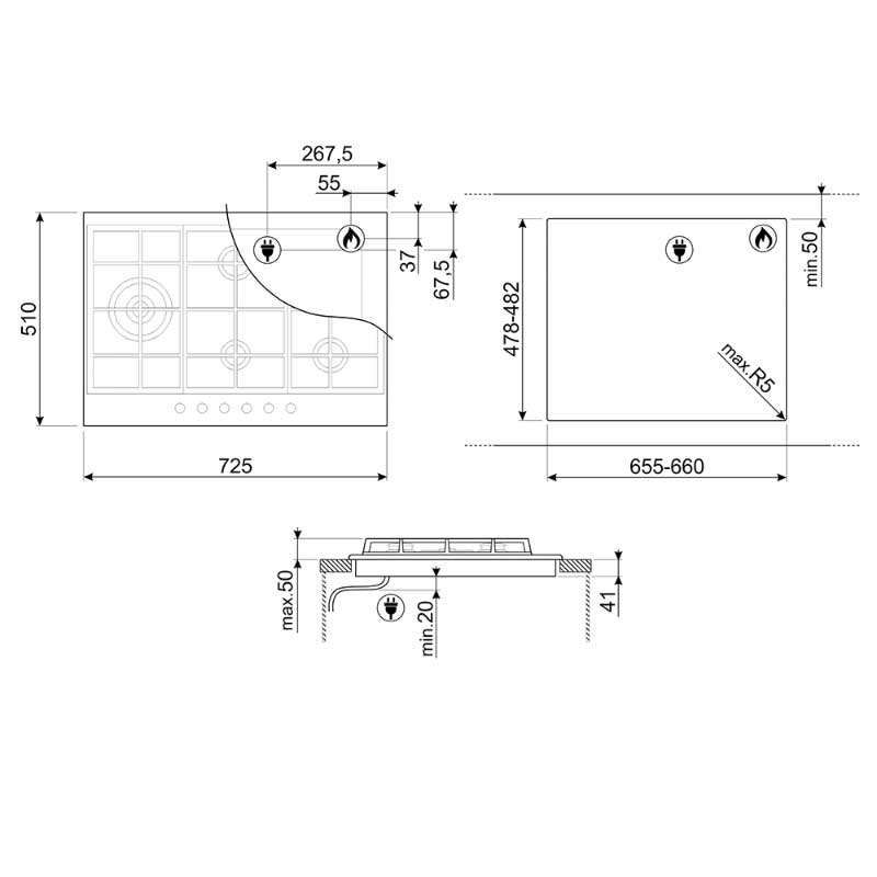 Dimenzije ugradbenog otvora (ŠxD) (mm) 478-482×655-660