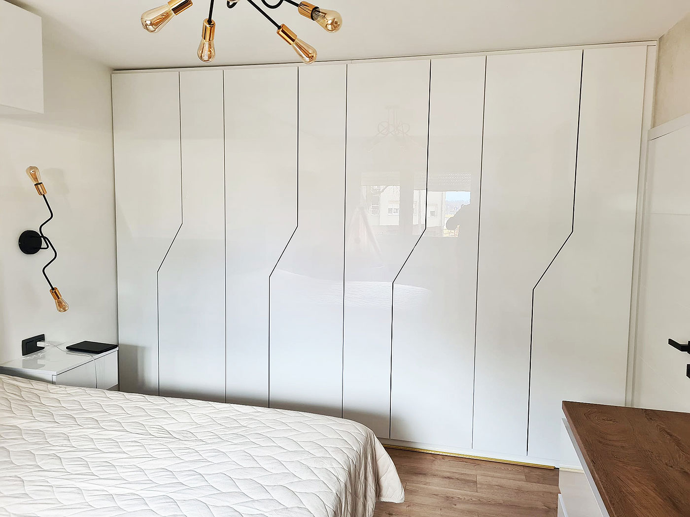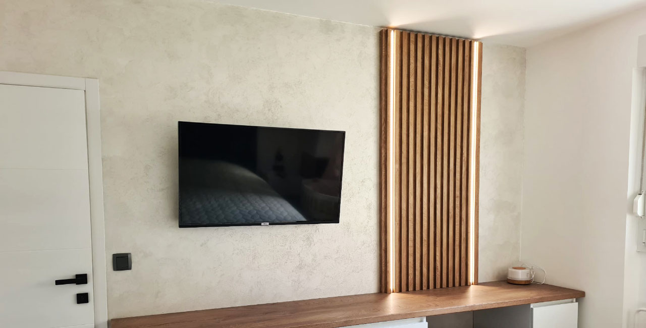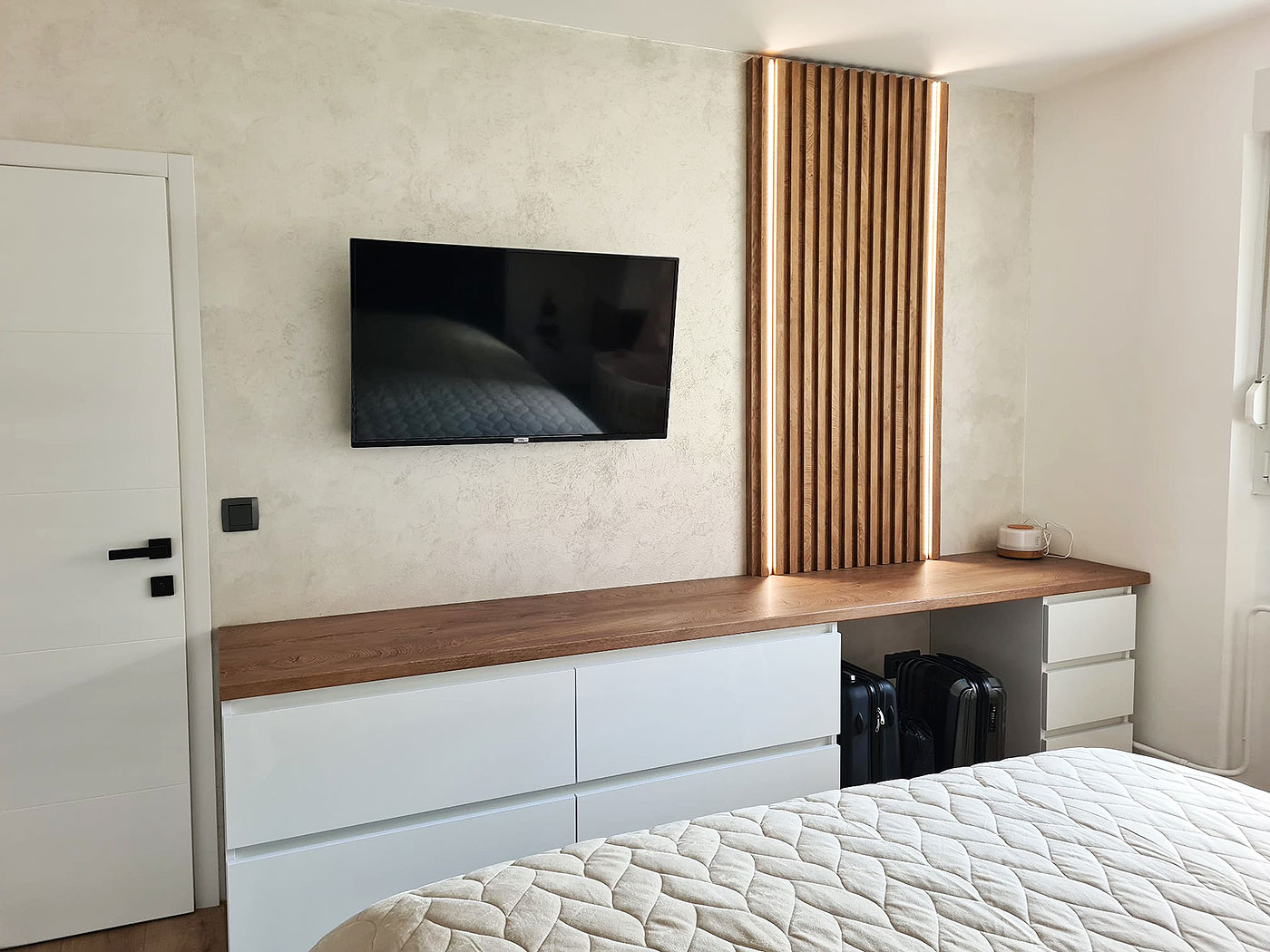 Drvni dekor iveral hrast classic, ladice matrix runner, garderobni lift, led rasvjeta, nosač hlača.