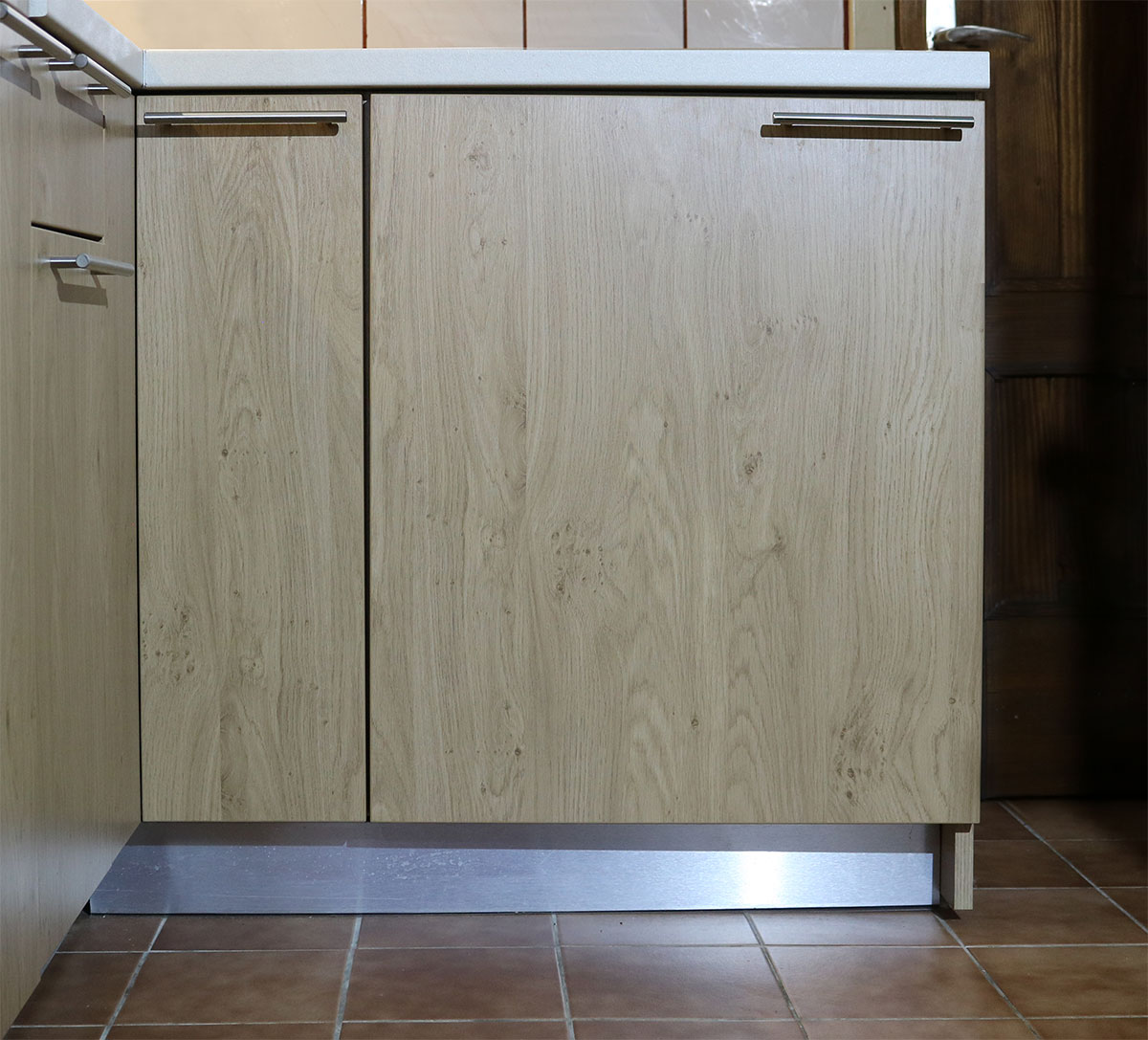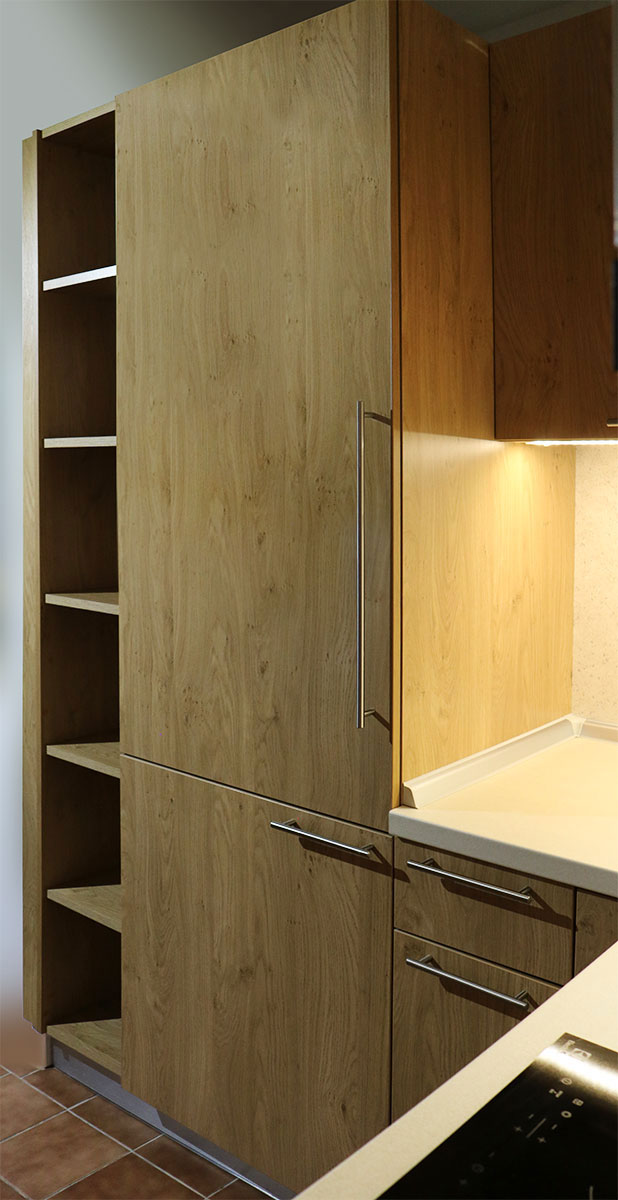 Fronte su izrađene od iverala Hrast Klasik debljine 19 mm. Vrata imaju ugrađene pante s ublaživačem, dok ladice imaju smart-slide sistem, što onemogućuje svaranje dodatne buke i isti se s lakoćom zatvaraju na korpus pomoću metalnih ručkica.