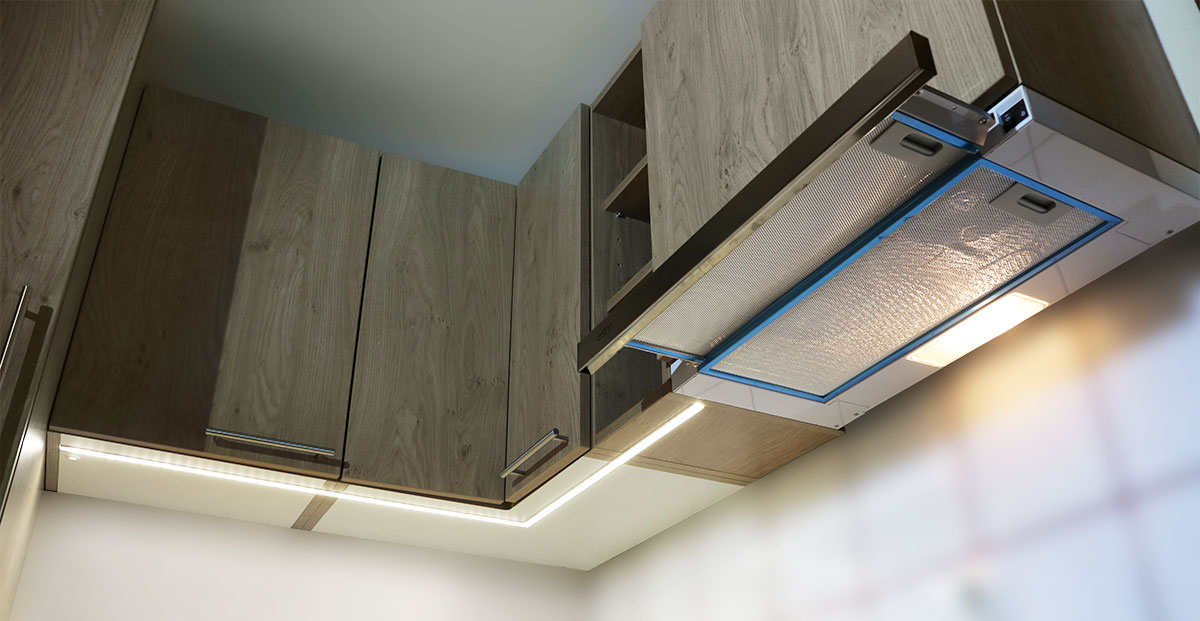 Izvlačna teleskopska napa upotpunjena LED rasvjetom zauzima mali prostor i privlačnog je izgleda.