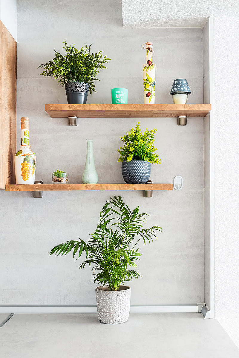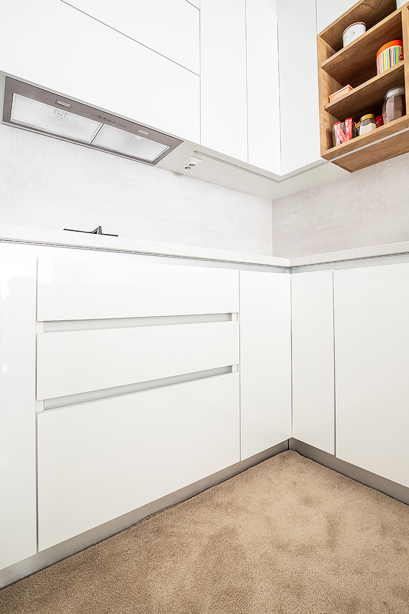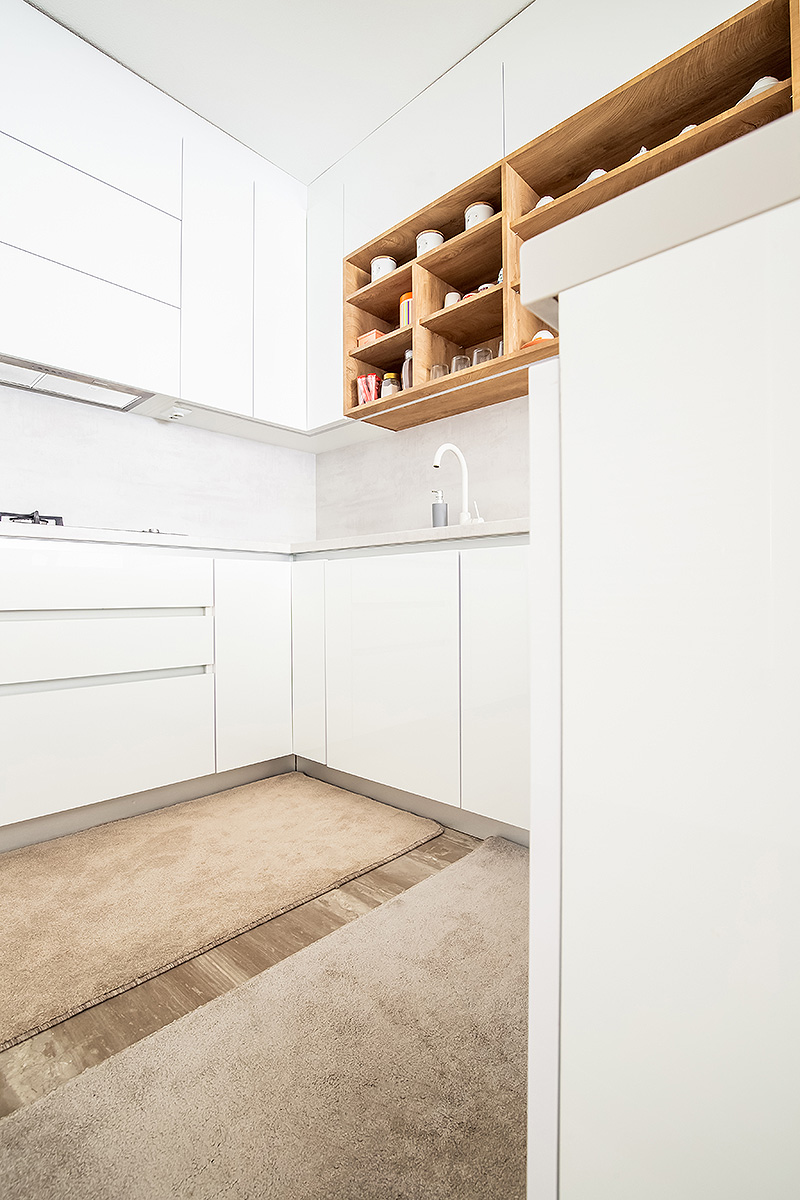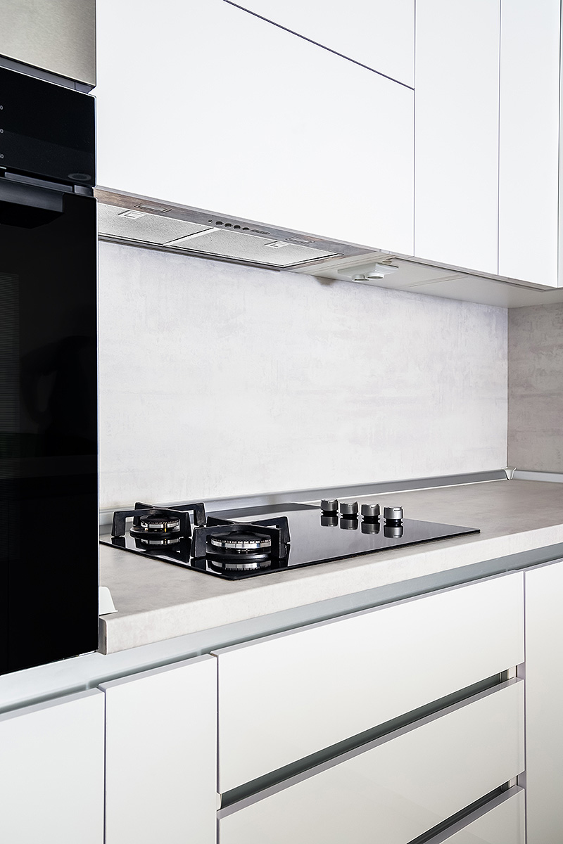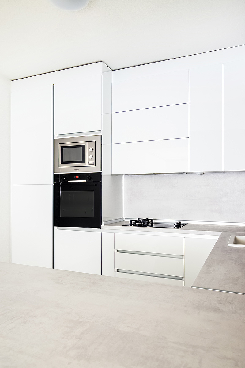 Možda je tradicionalna bijela boja kuhinje upravo ono što želite. Pri takvom odabiru treba pripaziti na veličinu prostora, obzirom da je bijela kuhinja (koje spadaju pod “skandinavski dizajn”!) prvenstveno namijenjena za velike, otvorene prostore. U ovoj manjoj kuhinji sterilnosti bijele boje suprotstavlja se prirodni dekor popularnoga hrasta čiji je predstavnik otvorena polica, pa i donja polovica otoka. No ako ni to nije dovoljno, malo zelenila uvijek može popraviti dojam!