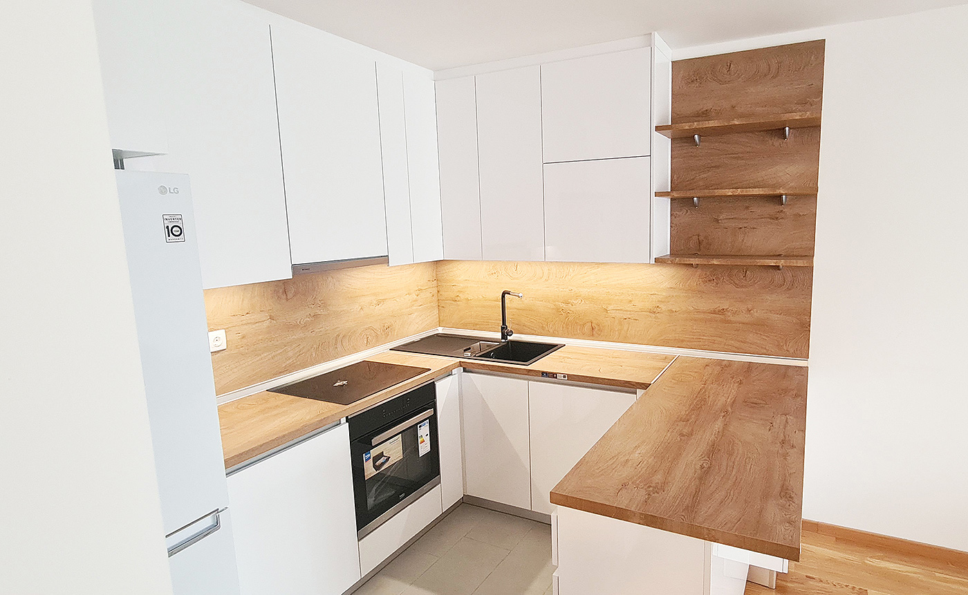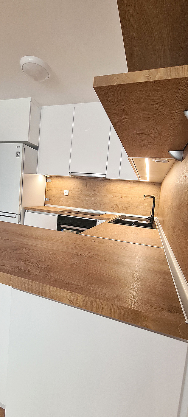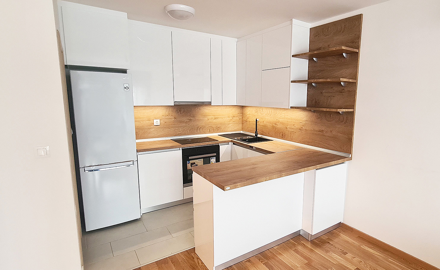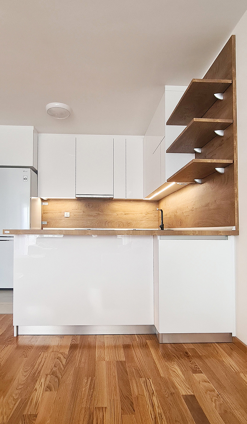 Materijal: medijapan bijeli visoki sjaj; drvni dekor hrast classic.