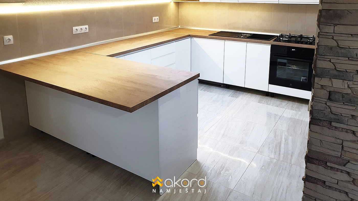 Materijal: medijapan bijeli visoki sjaj; drvni dekor hrast classic.