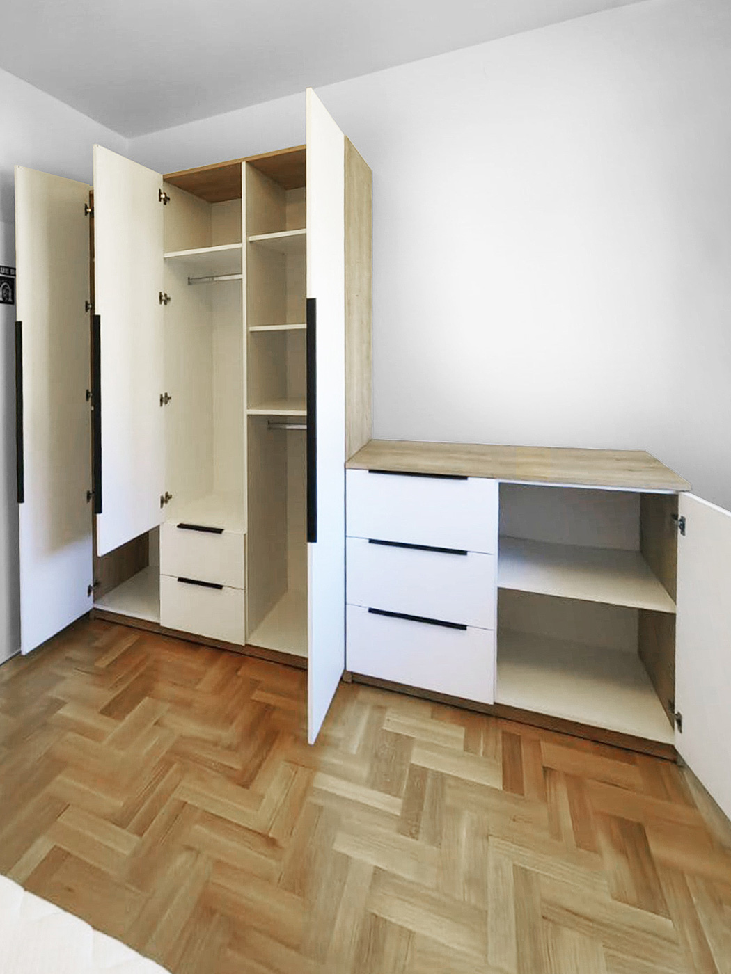 • Iveral hrast chalet, fronte medijapan bijeli mat kantiran abs trakom