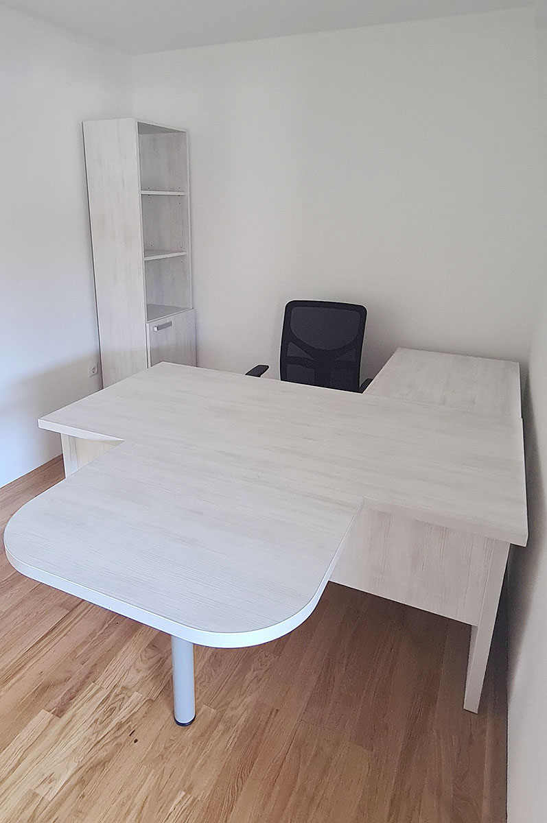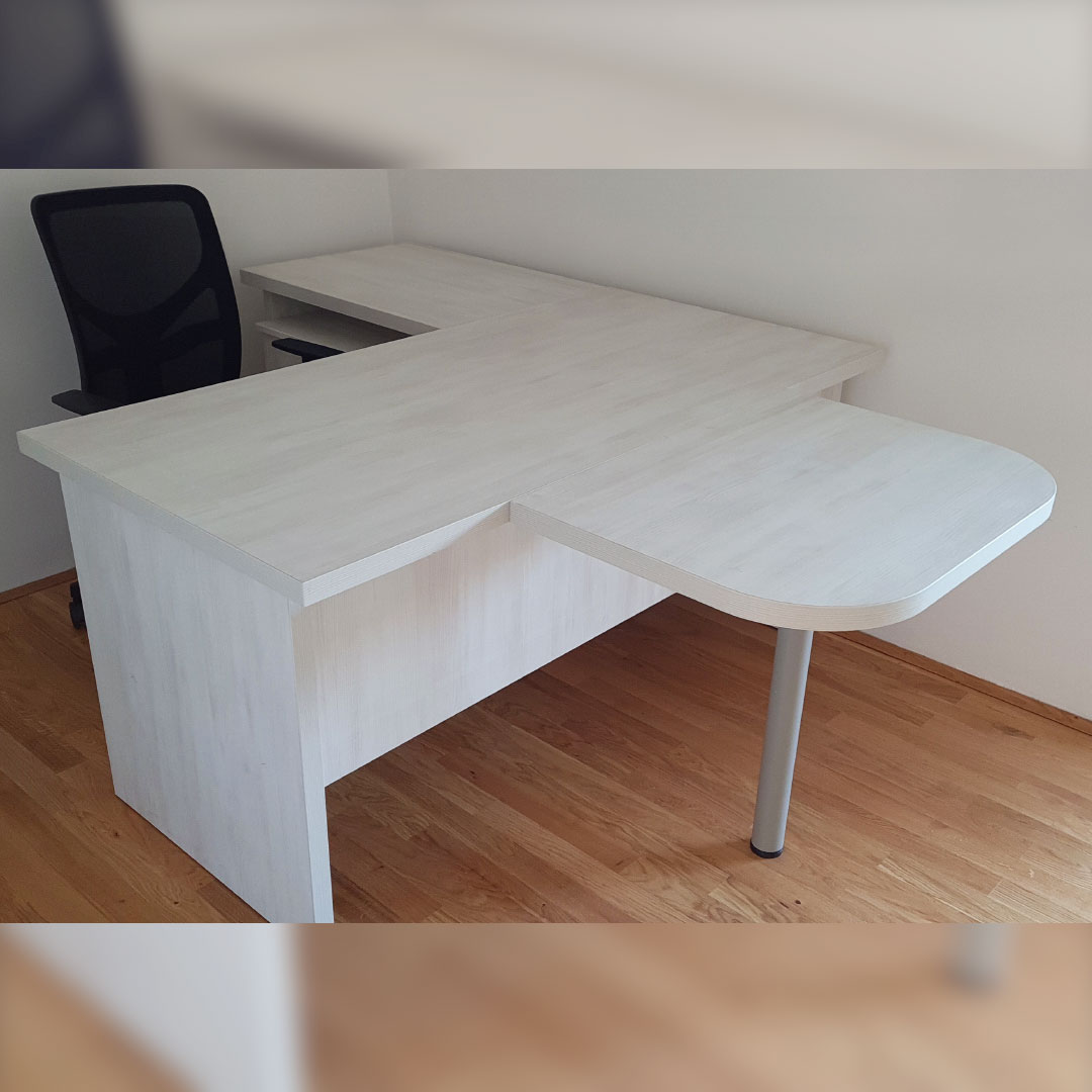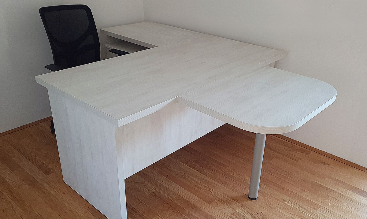 Stol je izrađen od iverala Kaindl La Vare (šifra 37744 AT), drvni dekor mat s godom. 19mm debljine lijepljen u 38 mm, sve ploče lijepljene i obrađene ABS trakom 2 mm debljine i 44 mm širine. Metalna noga koja pridržava nastavak stola, dimenzije je Φ 6, sa strukturom u sivoj boji (po Ral karti) s mogućnošću podešavanja.